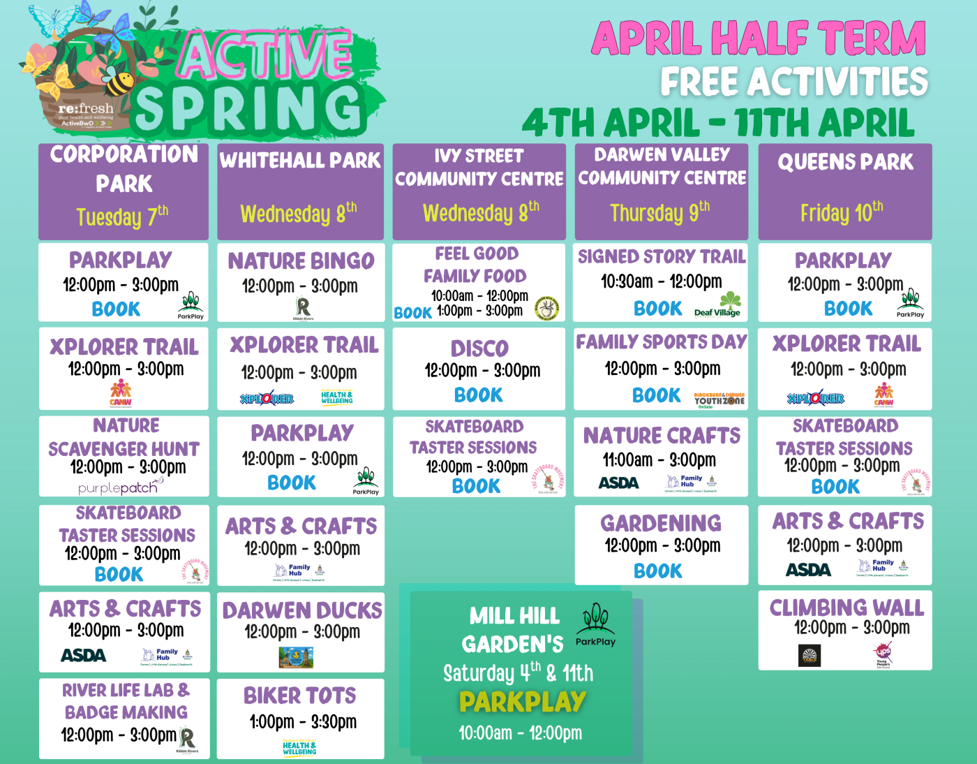 Highlighting our local green and blue spaces, we deliver Active Seasons across a range of areas in Blackburn and Darwen, for example, Witton Park, Whitehall Park, Corporation Park, Queens Park, and Ivy St Community Centre.